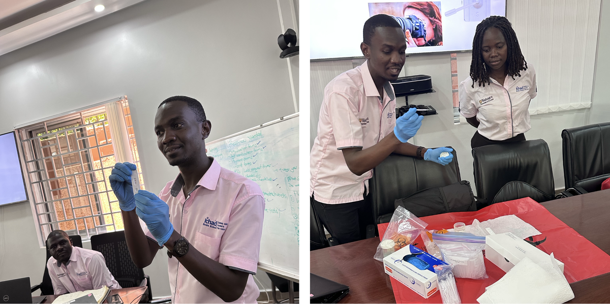 Mr. Samiri Jamiru demonstrating sample collection and testing procedures